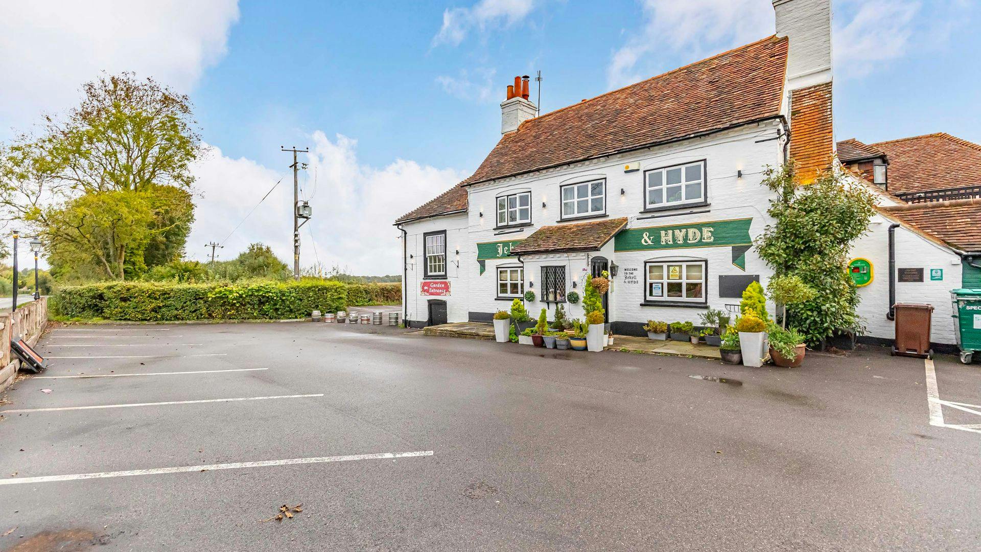 The Jekyll & Hyde is situated in a beautiful rural location in Hampshire, but has a strong roadside presence on a prominent A-road and is also close to the M3 motorway. The surrounding countryside is popular with both walkers and cyclists, making the most of the excellent walking routes and local road network.