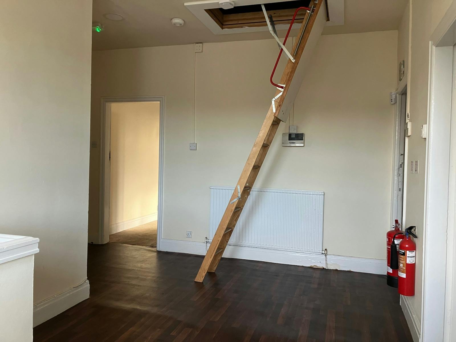 The first floor is private living accommodation providing four bedrooms, kitchen, bathroom, office and dining room. Pull down step ladder access to the attic.